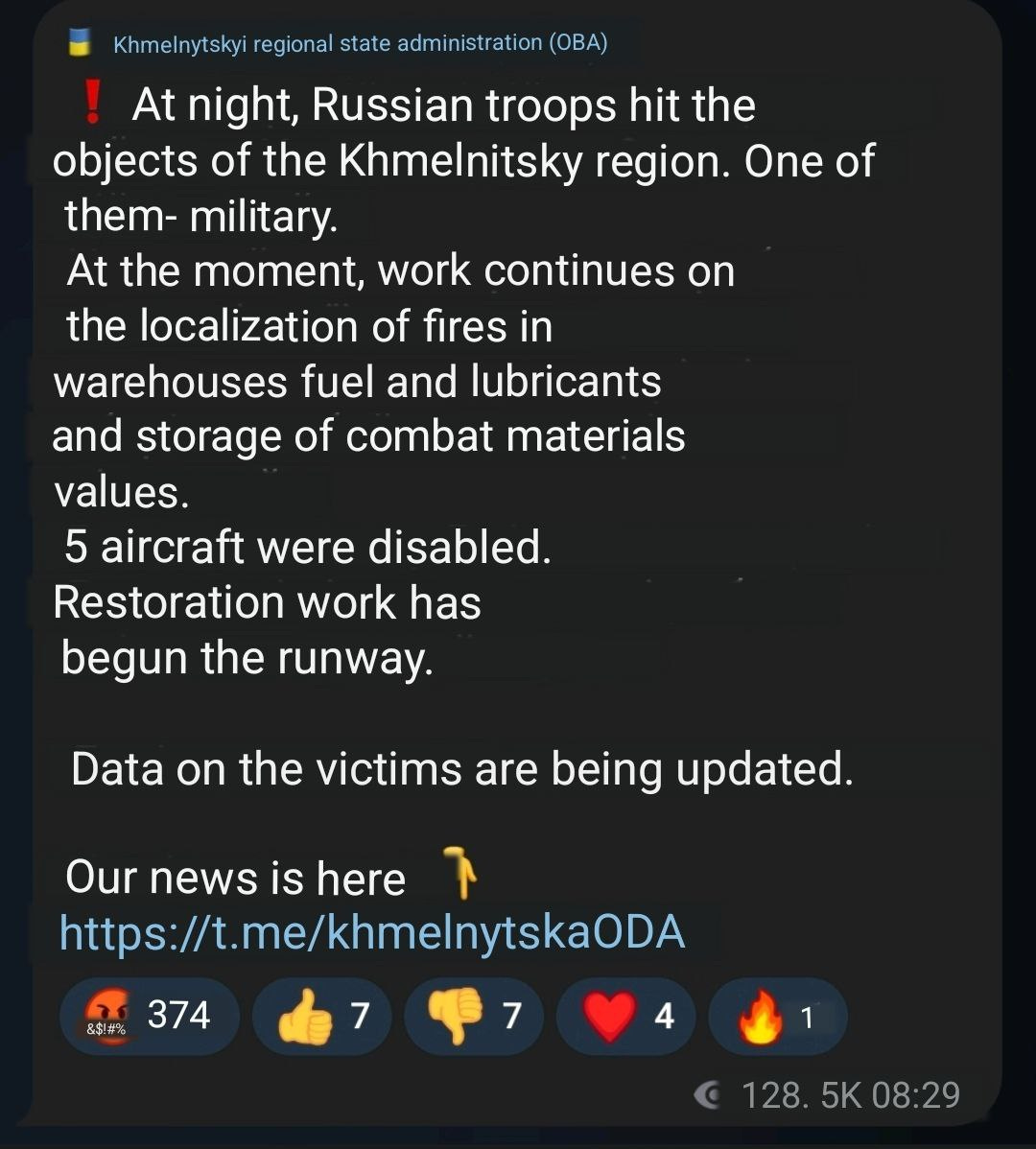 ⚡️⚔️ On the Air Base Strike in #Khmelnitsky Region ⚡️