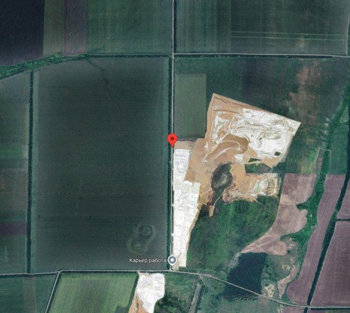 The Kotlyarivka he’s referring to is seen in the green circle below—with Novoserhiivka, which he mentions, seen just north of there, below Udachne: