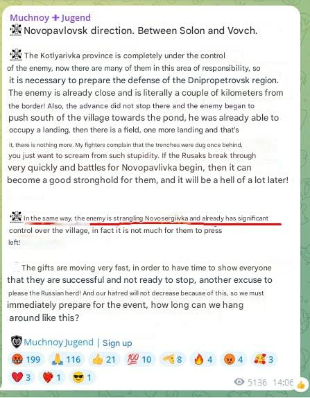 On the southwest end of Pokrovsk, Russian forces are pushing toward the Dnipropetrovsk region border. A top Ukrainian military channel wailed about Russia’s increasing progress here: