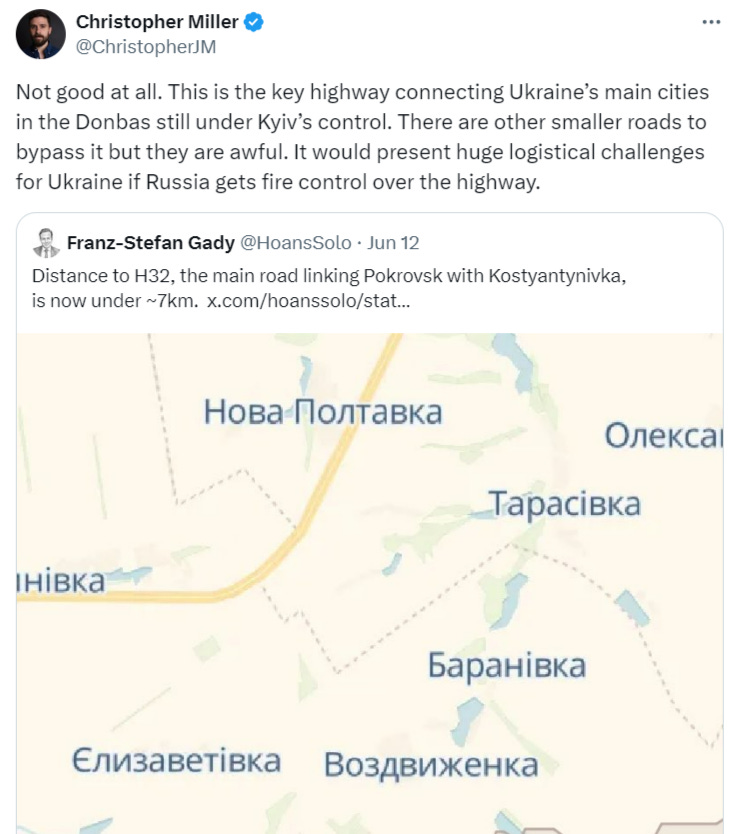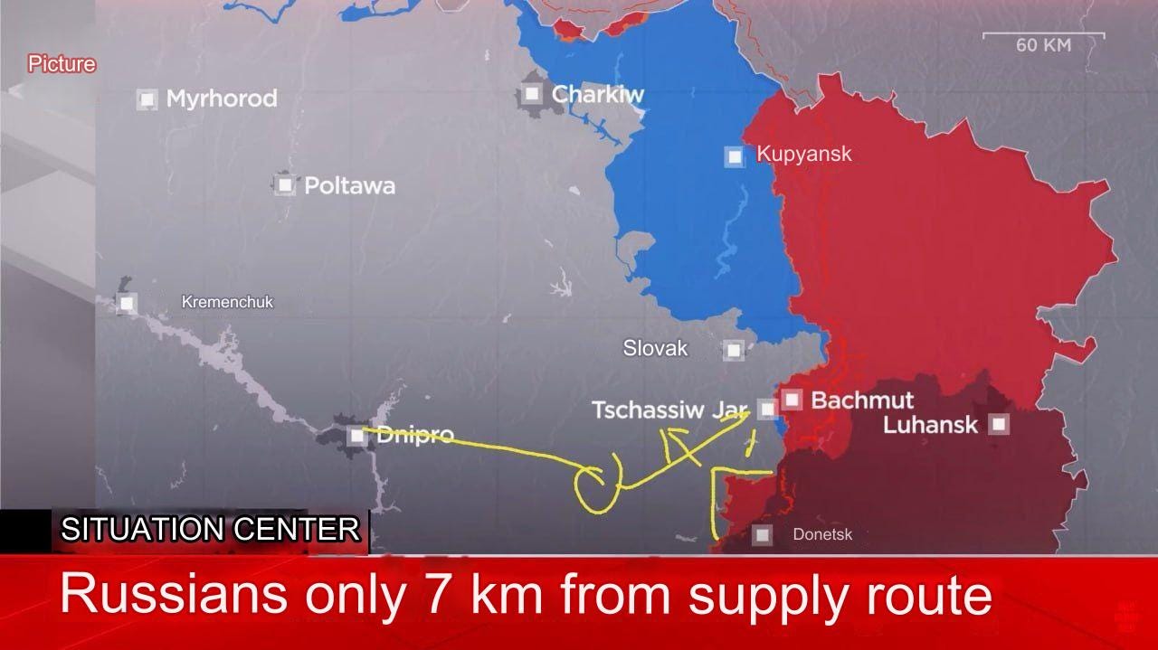 Julian Ropcke at BILD is again worried about the southern edge of this forming boiler, and how close Russian forces are to the lifeline highway: