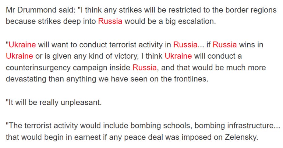 It seems they’re outlining the next strategy to oust Putin. It becomes harder and harder to pretend the country that’s supposed to be “winning”, according to Western propaganda, is the same that’s planning to switch to a strategy of terror attacks on schools.
