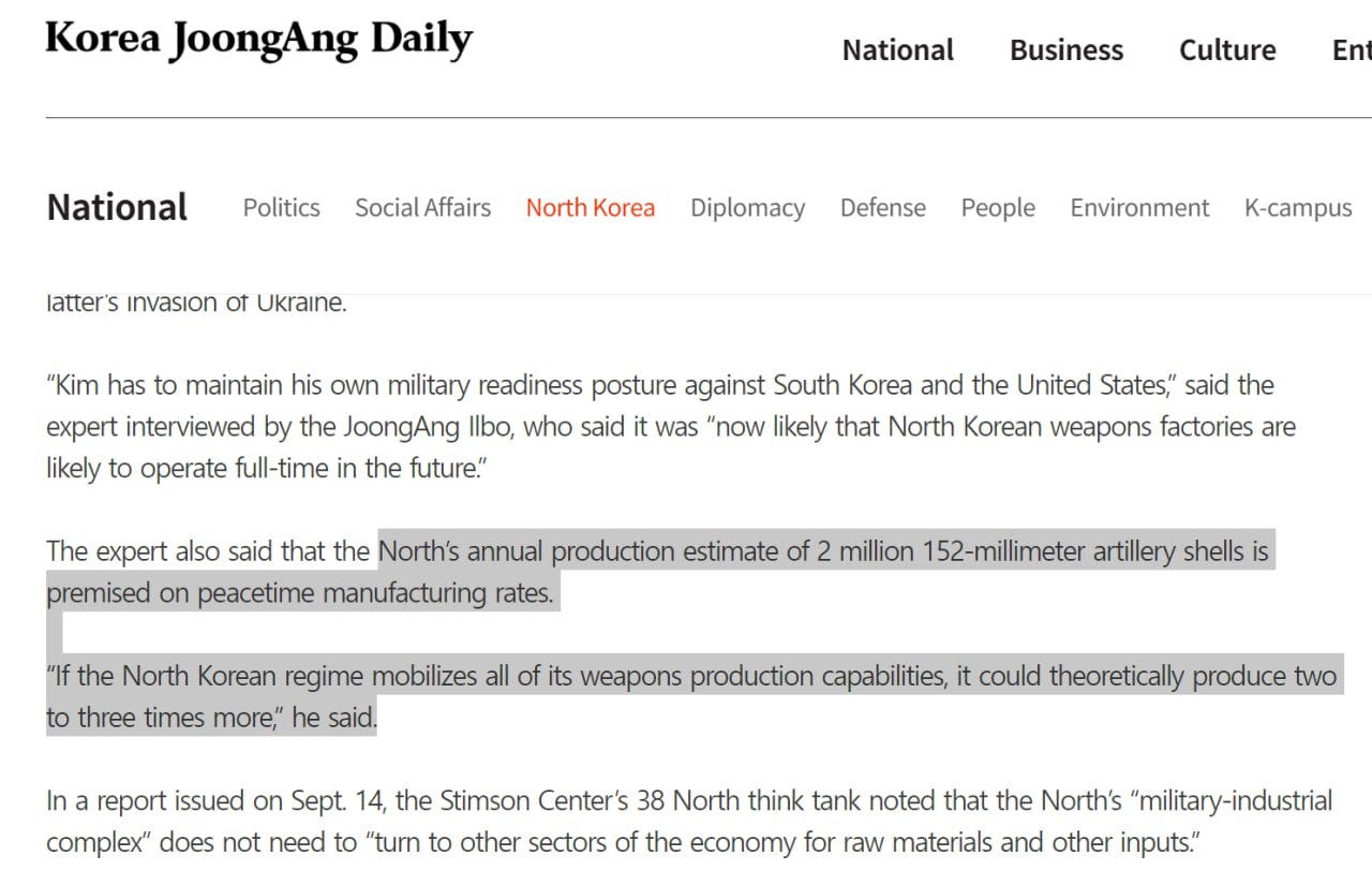 And for those who may balk at the numbers, South Korea just officially reported last week that they now calculate North Korea has already sent 10,000 train containers with 5 million shells to Russia: