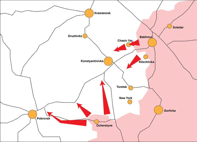 According to the publication, the target of the Russian armed forces is the T0504 highway, also known as the 'Road of Life', which runs from Konstantinovka to Pokrovsk, and from there the road to Dnepropetrovsk.
