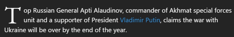 If that wasn’t enough, Apti Alaudinov in a new interview stated that the “war will be over by the end of this year”: