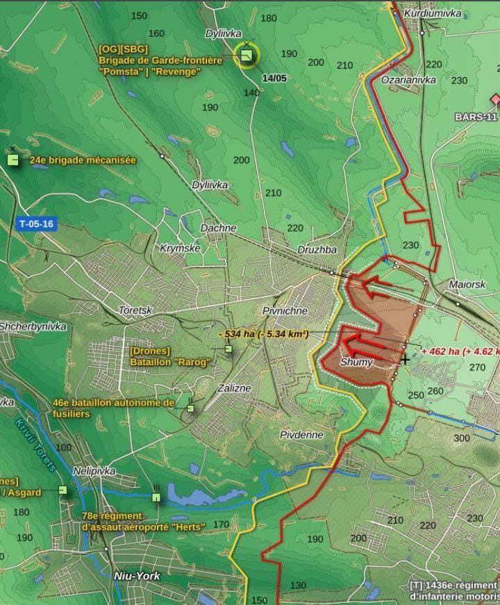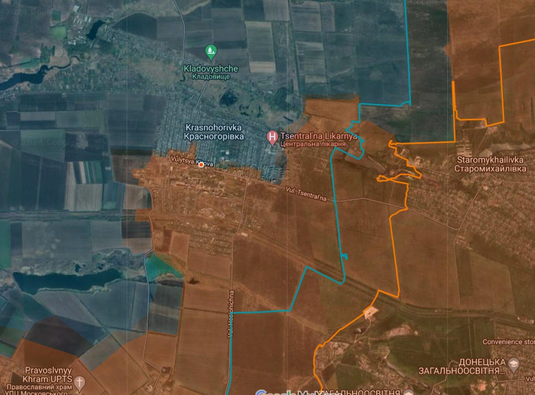 Not seen above are incremental advancements in Krasnogorovka, which as you can see is more than half captured: