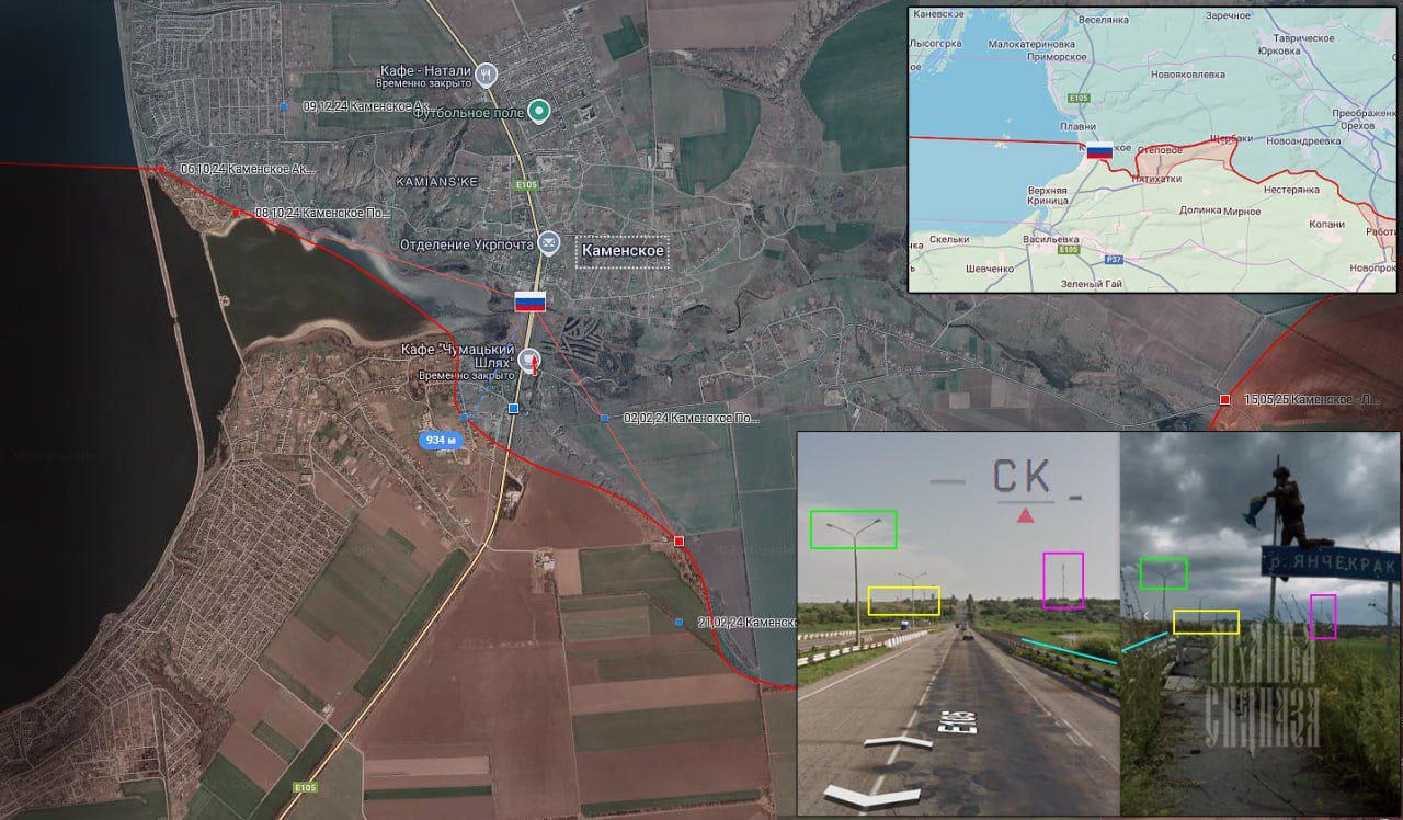 ▪️Demonstrating confident control over the area, they tore down the Ukrainian flag on the Yanchekrak River sign and raised the Russian flag.