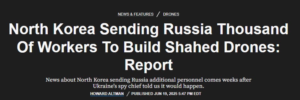 His information is that Russia produces 170 per day, and can scale up to 300 in the future. Recent reports claim North Korea may be sending up to 25,000 workers to Russia’s giant Alabuga drone factory where the Geran drones are made: