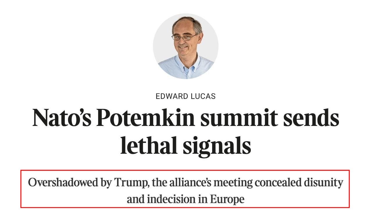 The only thing to come out of the summit was entertainment in the form of ‘Daddy-Gate’. In reality, the ostensible ‘achievement’ hailed by Rutte for bringing member countries onboard the 5% defense spending racket likewise appeared an illusion: