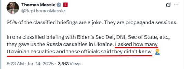 So much for US ‘secret intelligence’. It gives quite a perspective on Western reporting of Russian-Ukrainian casualties.