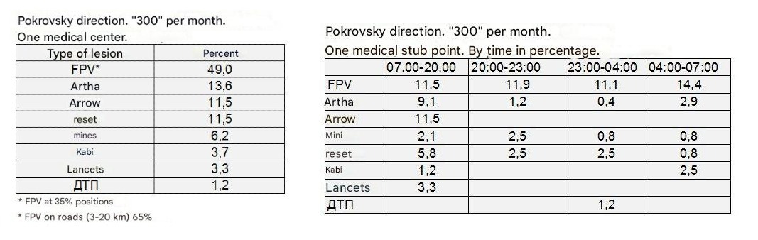 On the topic, here are recent statistics from a Ukrainian unit in the Pokrovsk direction about their “300” injuries broken down by munition type: