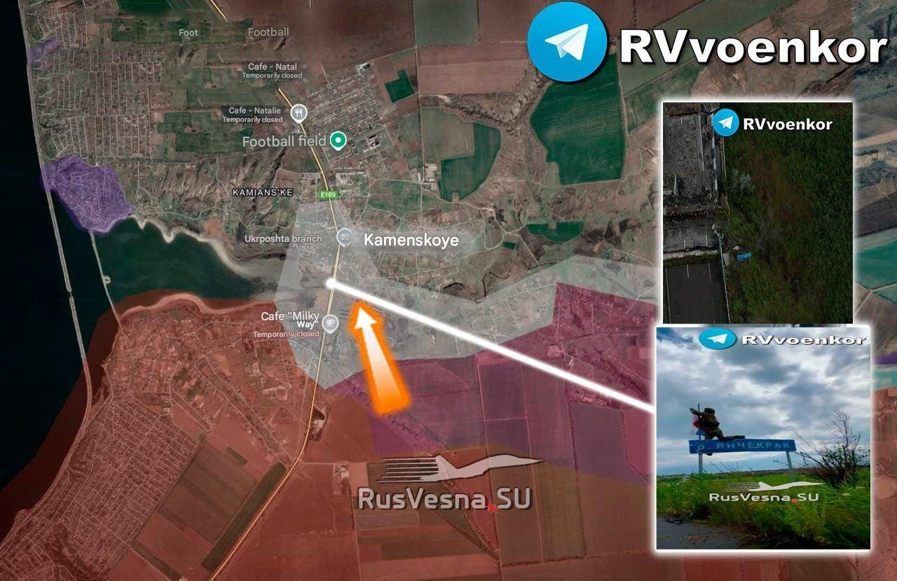 And like clockwork, days after those initial reports, there are now Russian breakthroughs ongoing as of today. The most notable happened in Kamyansk, right on the Dnieper, where Russian Airborne forces of the 247th Regiment stormed the center of the town and put up the flag: