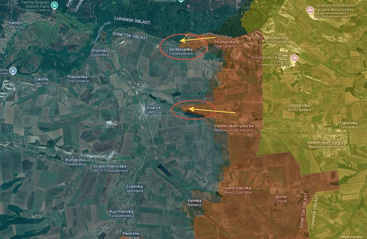 On the Seversk front, Russian forces pushed past Gregorovka, which they captured last time, as well as pushing on the center salient toward Seversk city itself:
