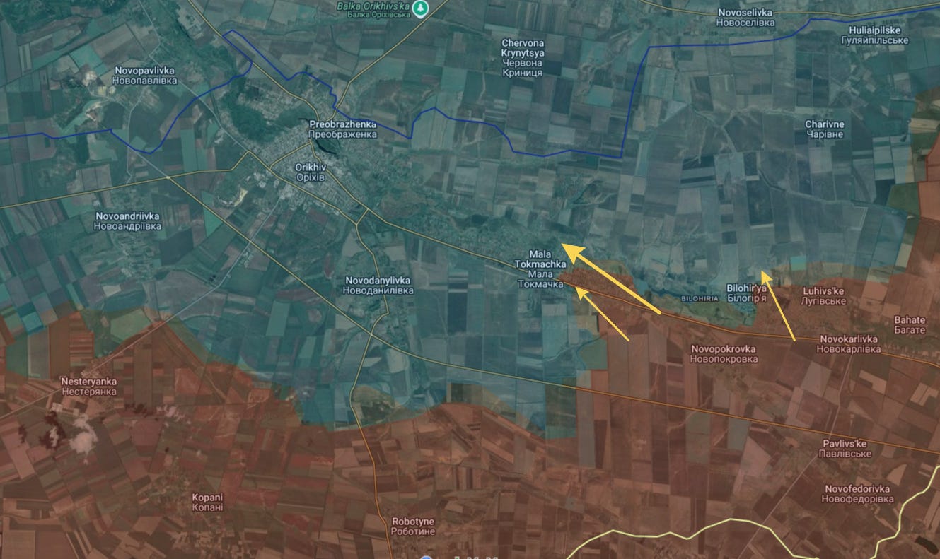 Just east of there Russian forces have also begun moving into Mala Tokmachka, from whence the 2023 Ukrainian summer ‘counter-offensive’ once was launched.