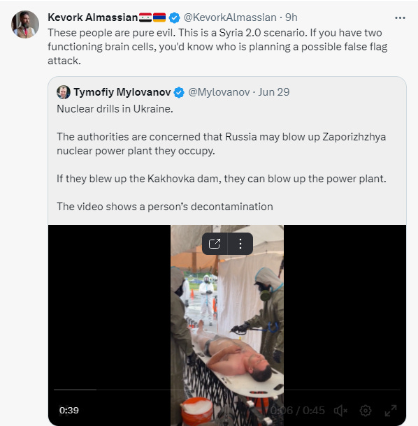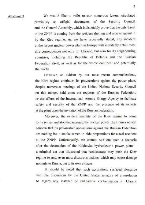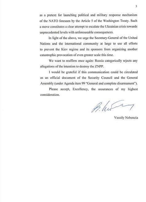 It’s gotten to the point that Russia’s permanent UN representative has filed an urgent appeal to the UN, stating that Russia under no circumstances intends to destroy the plant. Read it to get an idea of the serious tone: