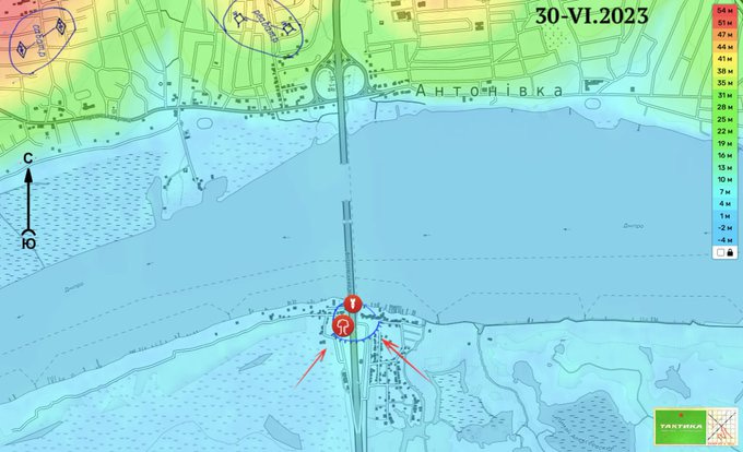 Speaking of Iskanders, another development is that Ukraine has continued entrenching under the Antonovsky bridge on the Russian side: