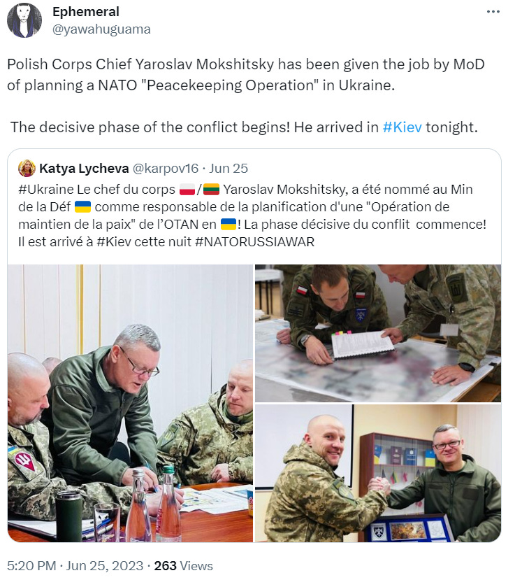 The point is to say that NATO is completely stumped. Weened on their ‘Air-Land Battle’ doctrine privileging airpower and deep strikes to the rear, they have no clue how to fight this kind of war. This is why it’s inevitable that Ukraine will soon turtle up and resume more of the political and psychological aspects of the hybrid/4gw side of the warfare. This will of course mostly revolve around new terror attacks and falseflags like the planned ZNPP strike.