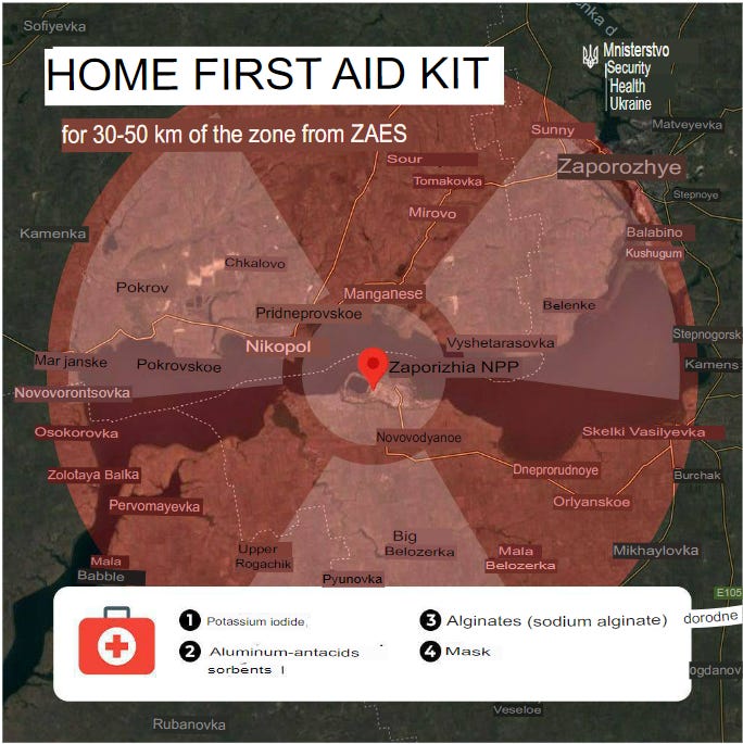 Ukrainian health minister Viktor Lyashko went on TV to gentle the Ukrainians’ concerns by telling them that Kiev would not be affected by a ZNPP nuclear disaster, but still cautioning them to be careful and follow guidelines: