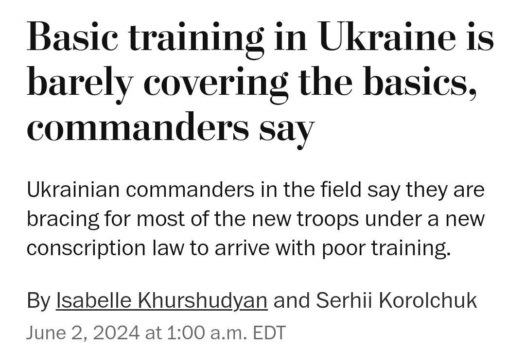 They’re basically whitewashing and sugarcoating the fact that Ukraine can no longer even consistently train its troops in the rear, but rather sends newly gang-pressed conscripts straight to the front and forces them to “learn on the job” as they die en masse.