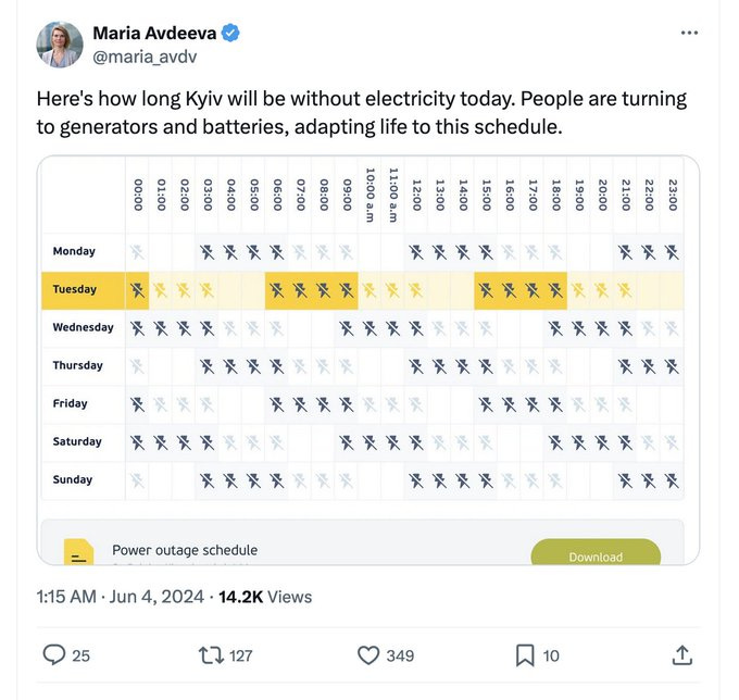 The electricity situation is getting worse and worse in Ukraine, with regular power outages now scheduled each day to preserve their grid: