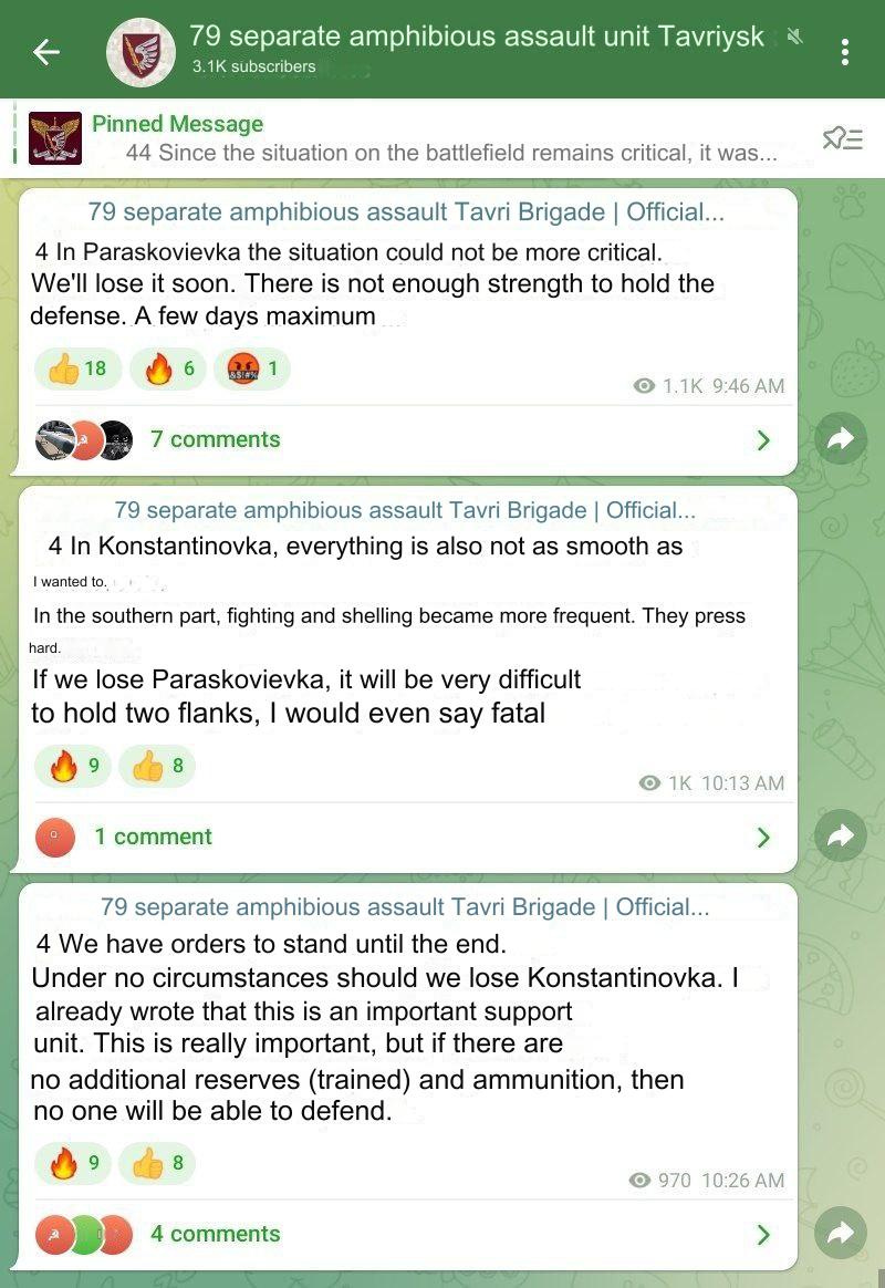 Here’s the AFU’s official 79th brigade completely broken up about their losses in Paraskovievka: