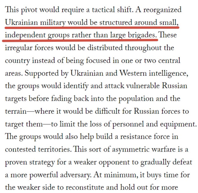 So, we’re officially at the stage of the war where they’re literally advising Ukraine it’s okay to withdraw from Kiev. That’s not to mention they call for the entire AFU to abandon brigades and be broken up into tiny guerilla groups: