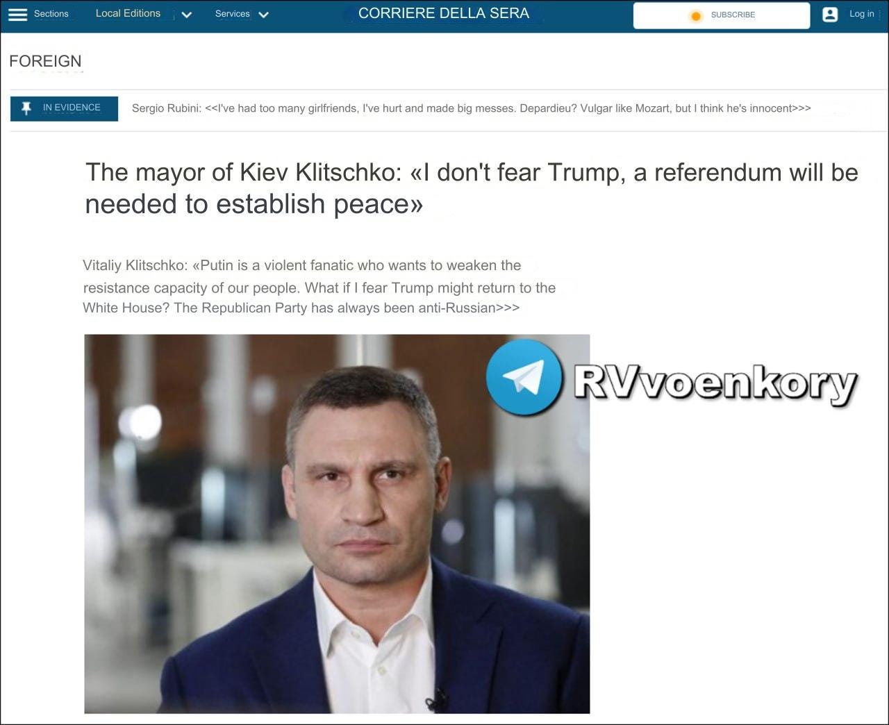 Klitschko stated that Zelensky will need a people’s referendum in order to sign an armistice with Russia: