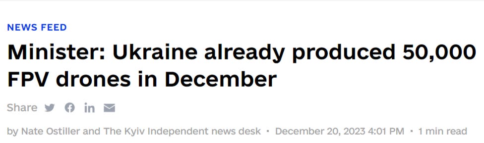 4000 per day is 120,000 a month. Last December, Strategic Industries Minister of the AFU, Kamyshin, reported that Ukraine produces 50,000 monthly: