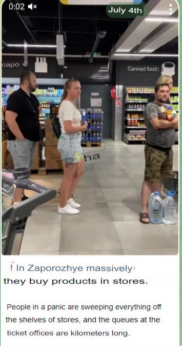Ukrainian propaganda even claims civilians are buying up all the stores and evacuating in light of the threat: