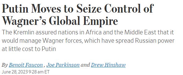 Wagner was Nationalized, and many Russians have applauded that move. I recently wrote about Natural Monopolies, National Security being one that clearly isn't in NATO and most other nations. Even Russia isn't 100% in that regard. IMO, ALL natural monopolies ought to be Public Utilities, and that includes almost everything related to what human society needs to operate. Once upon a time in human history, that's the way it was. One of the reasons the world's so fucked-up is due to that mode of social organization being usurped. But that's a subject for me to write about once I get my Substack organized. It will be named Karlof1"s Geopolitical Gymnasium and is very unlikely to discuss Russia's SMO like Simplicius does. It'll deal with Big Picture issues as the Multipolar World comes into focus.