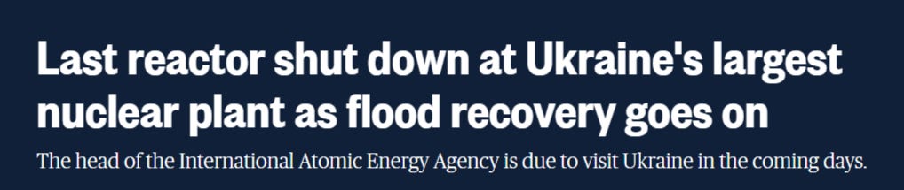They go on to state that if the reactors were operating normally, meltdown can occur in about two and a half hours. But Russia has put the reactors at ZNPP into cold shutdown as of June 9th, 2023.