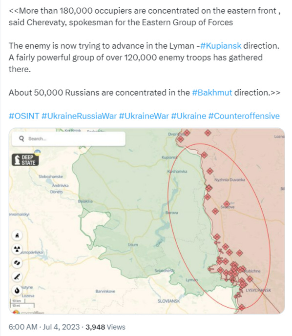So, in light of all that, is it possible Wagner could actually be used from the northern vector to tie down Ukrainian troops while Russia launches its own Summer-Fall northeastern assault for Kharkov? They’ve already been conducting a stealth offensive there, gaining new territory every day towards the Torske-Lyman vector, so it’s only a question of whether they’ll continue the slow pressure campaign or launch a more decisive effort there.