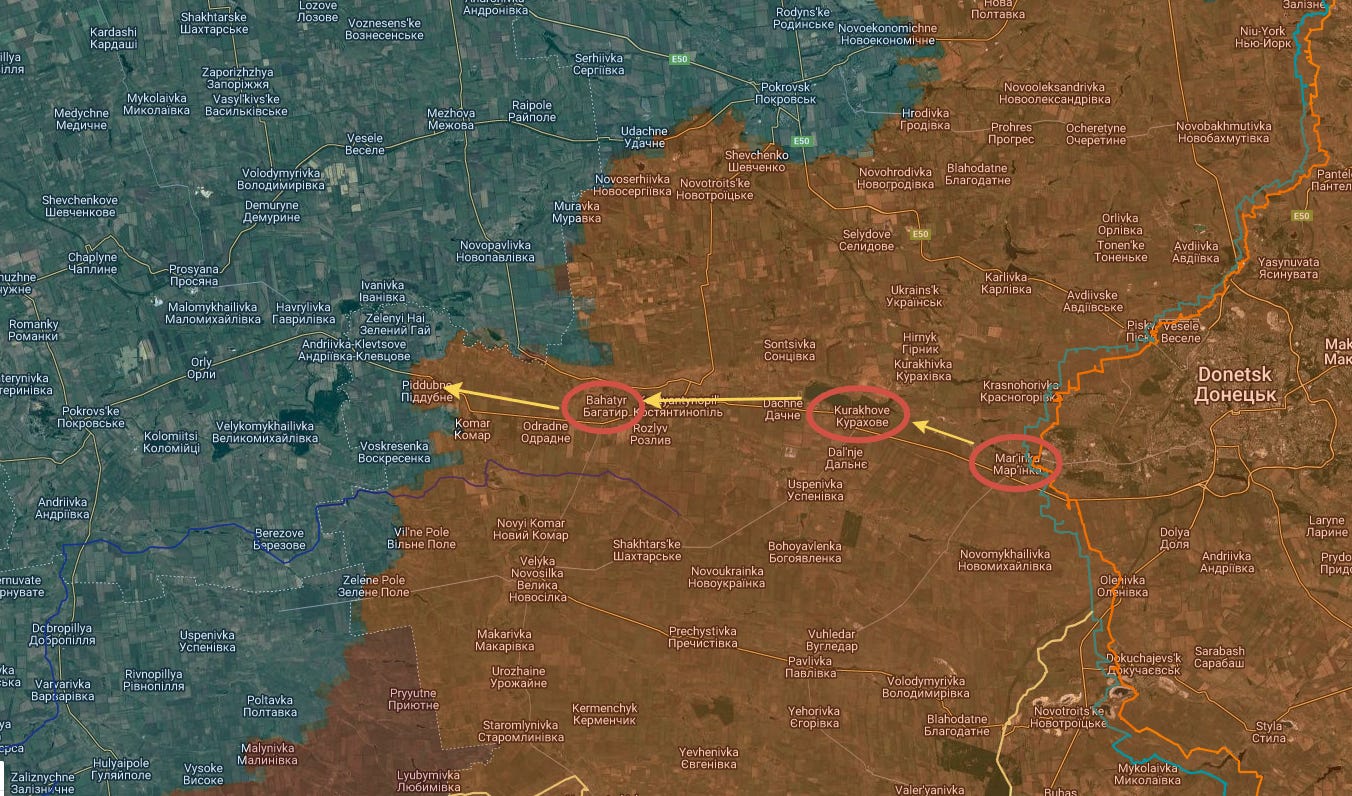 For those wondering, this is along the old Marinka-Kurakhove-Bogatyr line: