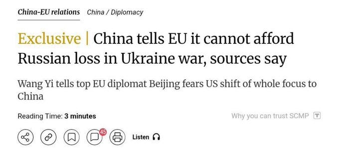 On that note, China’s FM Wang Yi recently dropped a bombshell, for the first time vocalizing China’s commitment to Russia’s SMO: