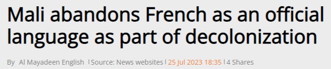 Now it’s being reported that Mali has dropped French as an official language in the country, leading to another big step toward decolonialization.