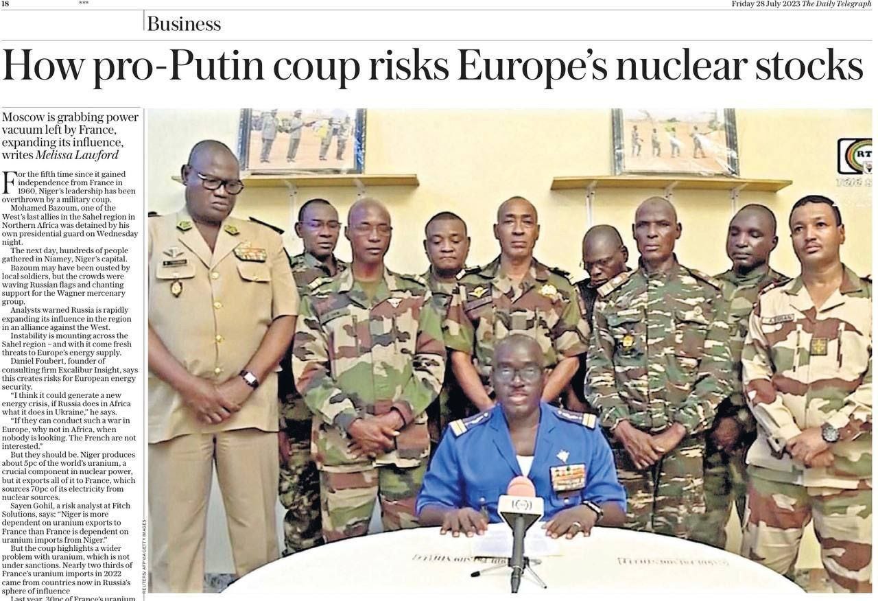 Momentous things are setting into motion geopolitically all over the globe, most notably in Africa. A coup took down the president of Niger, a country of critical importance to France and the NATO bloc. The Atlanticists are extremely worried now: