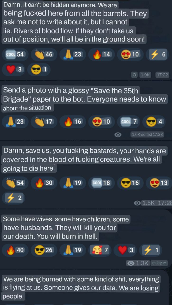 And here is another, from the 35th Brigade of the AFU, desperately pleading for help after they were slaughtered in Staromayorsk: