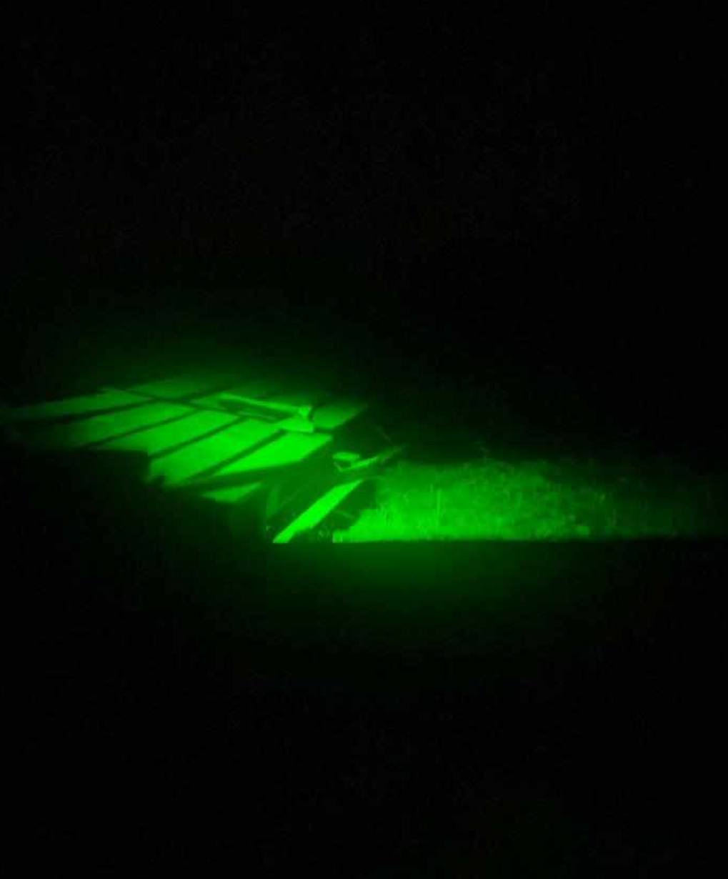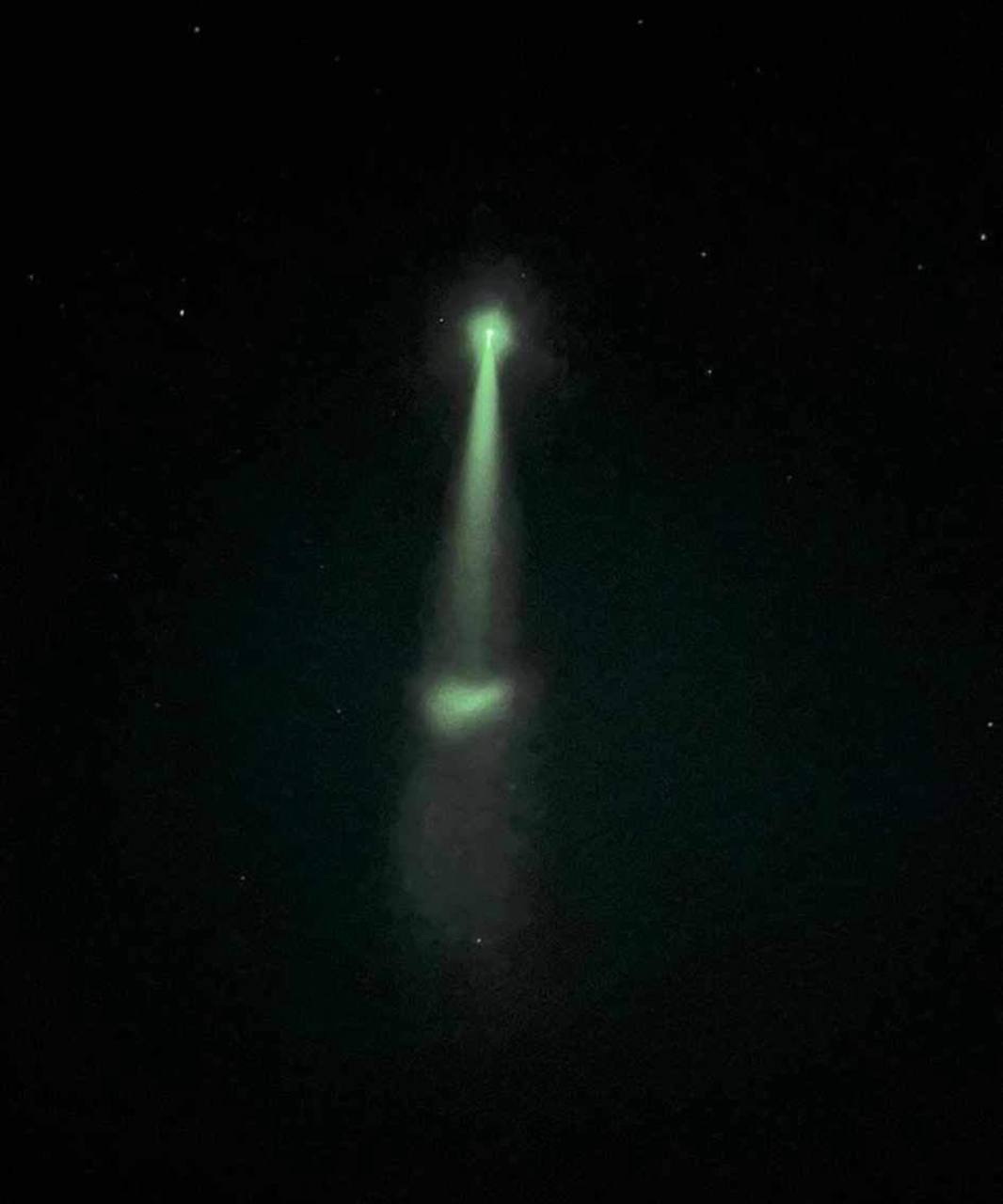 With another photo a soldier sent him, which shows some equipment near the soldier’s position being illuminated from above by the mysterious green light: