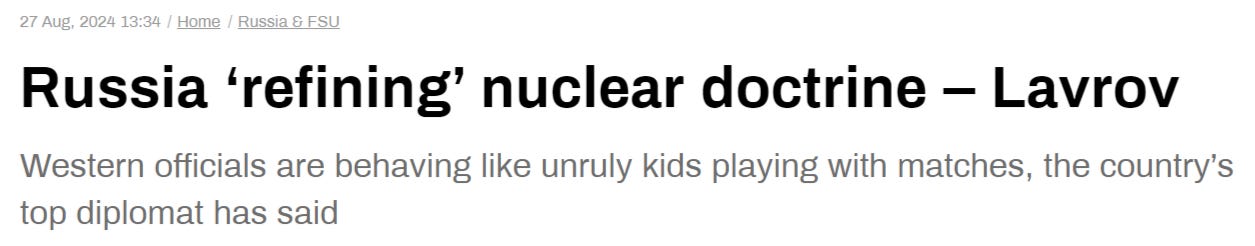 Well, lo and behold, at his latest press conference, Lavrov just stated that Russia is currently “fine tuning” or “refining” its nuclear doctrine—what could that mean?