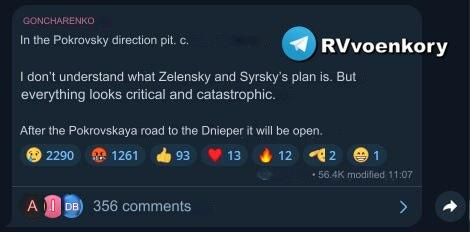 Rada deputy Goncharenko was beside himself, calling the situation catastrophic. He added that after Pokrovsk, the road to the entire Dnieper will be wide open: