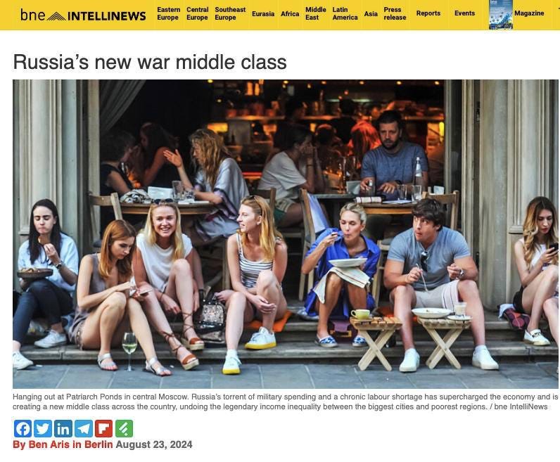 However, that does not mean Putin is even close to being in danger. In fact, the war has apparently been so good for Russia that an entirely new Russian middle class is emerging from it shadows: