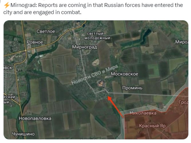 As of now, they’re mere kilometers from Pokrovsk, and right at the outskirts of its neighboring city of Mirnograd: