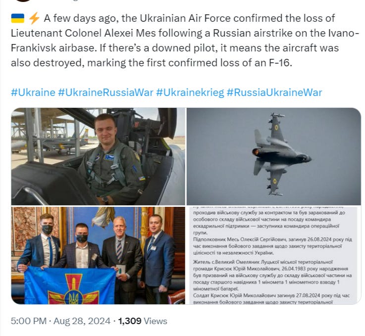Now, there’s word that a top Ukrainian pilot known to have been enrolled in the F-16 training program was killed in the strikes, as confirmed by the Ukrainian side, leading to the speculation that at least one F-16 and its crew was in fact hit on the ground: