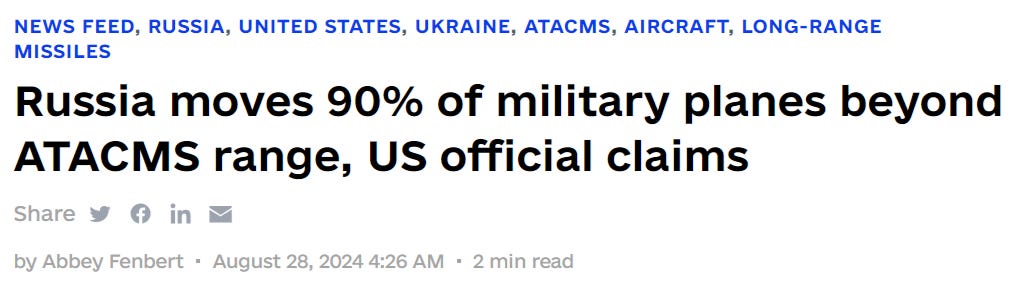 They’re effectively saying Ukraine doesn’t need to do long range strikes because Russia has moved its planes out of the ATACMS’ range and that Ukraine will have better luck using drones to strike Russian territory: