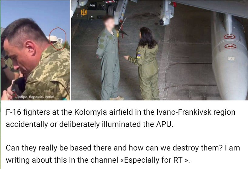An interesting series of events. Russian forces apparently identified where Ukraine was storing its F-16s via a PR video where a hint of a building was seen over the officer’s shoulder, circled in red below: