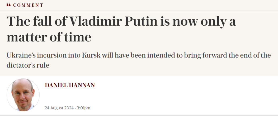By the way, it’s pretty humorous how almost in unison, several outlets again take up the brittle coordinated psyop to pretend that Putin is close to toppling due to the failed Kursk fiasco: