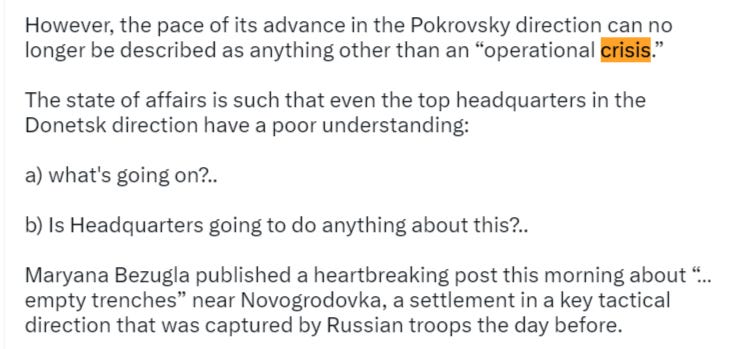 Head of the top Ukrainian channel “Deepstate UA”—which is basically the Ukrainian ‘Rybar’—calls the situation complete chaos:
