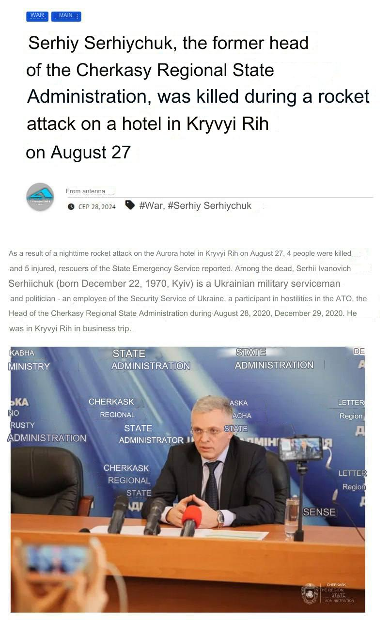 Likewise, in the recent Russian Iskander strike on the ‘Aurora’ hotel in Krivoy Rog, widely decried as a “strike on civilians”, we now learn from Ukrainian sources that an SBU colonel and mercenary were amongst the killed, validating the Russian MOD’s version that a secret grouping of officers was hit at the hotel: