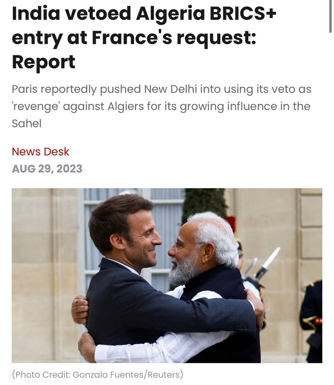 France apparently even begged or coerced India into vetoing Algeria at the BRICS summit. They’re terrified of losing more: