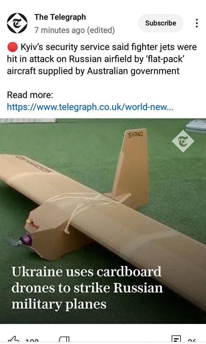 The latest reports indicate that this operation was planned with British Mi6 for many months. Of course something that took months to coordinate will do some damage, particularly since the attack utilized a mass drone swarm of at least 21+ drones, according to some reports. They were said to possibly be the new Australian “card board” drones which have been in headlines recently: