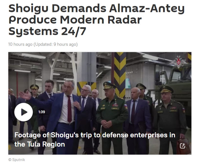 So what does Shoigu do? The so-called “hated” defense minister visits the top manufacturers of Russian counter-battery systems and demands for them to increase production rates: